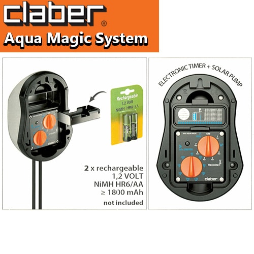 Want to set up a drip irrigation system without a tap or a power socket? Now you can with Aqua-Magic System, an exclusive timer that exploits sunlight energy through its built-in photovoltaic panel and features an integrated pump to draw water from any provided tank. Up to 54 different irrigation programmes can be set using two simple dials, to meet all your irrigation requirements. Aqua-Magic System is a complete kit which includes all the components (feeding tube, drippers, couplings and stakes) to set up a drip irrigation line easily and without the need for any special tool, for delivering always just the right amount of water to up to 20 pots.